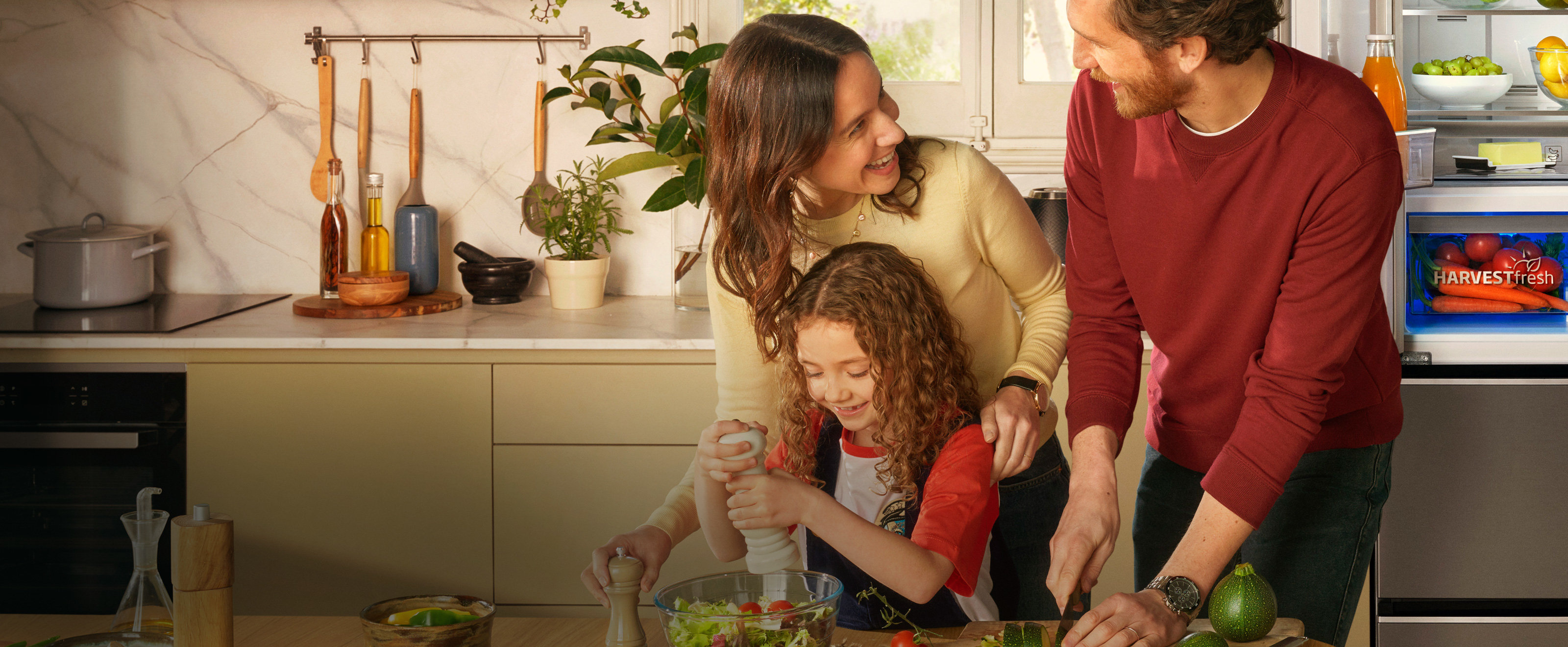 Designed with quality and reliability in mind, our range of freestanding fridge freezers and integrated fridge freezers keep your food fresher for longer with innovative technology like HarvestFresh™, which preserves the vitamins in your fresh fruit and veg in the crisper drawer. Whilst our FreezerGuard technology means your appliance can be kept anywhere in your home, even the garage, our Frost-Free technology means you won’t have to waste time manually defrosting your fridge freezer. Looking for more information? Check out our detailed fridge freezer buying guide. Or, if you’re looking to make a statement in your home, check out our American-style fridge freezer buying guide. For added peace of mind, selected appliances are eligible for the 10 Year Parts Guarantee.